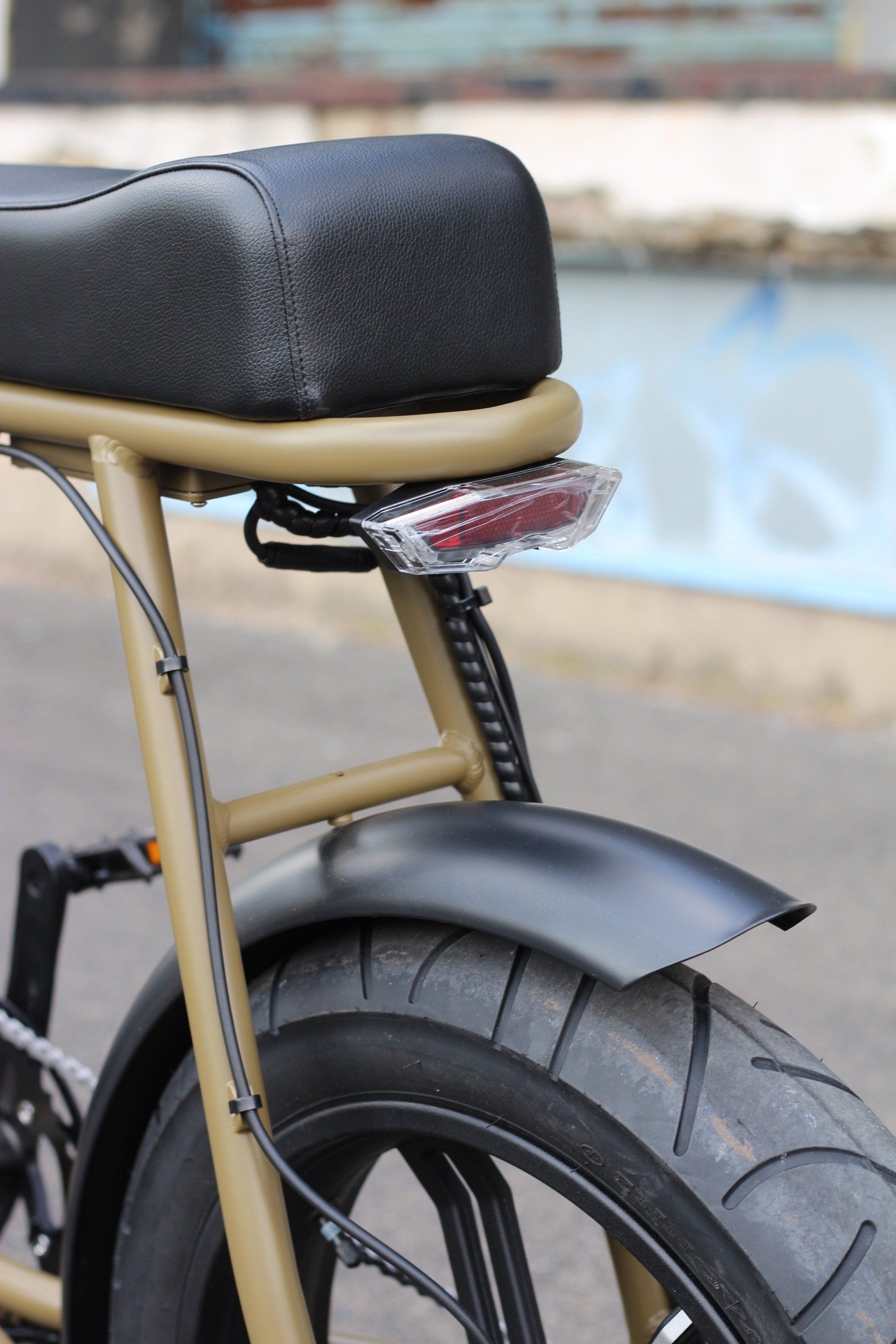 Verbautes optionales Zubehör: 7 Zoll LED-Frontscheinwerfer, LED-Rücklicht inkl. Bremslicht, Seitenständer, Bafang Alufelgen, Ledergriffe